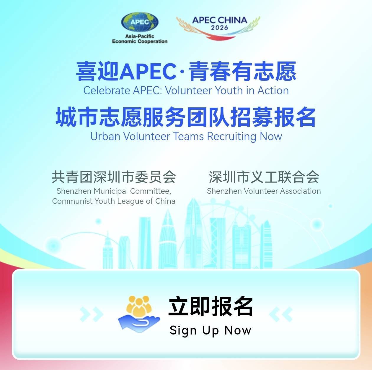 “喜迎APEC·青春有志愿”城市志愿服务团队招聘报名活动。记者自深圳团市委获悉,截至目前,深圳注册志愿者已突破420万人,“来了就是深圳人,来了就做志愿者”的城市风尚,正转化为服务国际盛会的坚实支撑。3月5日,深圳正式发布“2026 APEC青春志愿行”系列活动,以八项贯穿全年、覆盖全域的专项行动,构建起“能力提升、城市赋能、服务保障、激励关爱”APEC全链条志愿服务体系。与此同时,“志愿深圳”小程序英文版与APEC专区同步上线,搭建起覆盖全城、联通中外的多语种志愿服务网络。