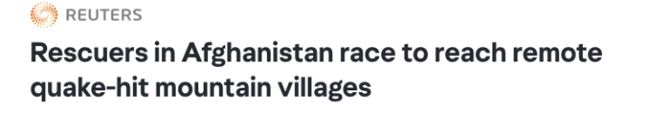 地震后,不少受灾村庄被夷为平地,数以万计的家庭流离失所。阿富汗当局表示,由于山地地形崎岖以及天气恶劣,给救援工作带来重重困难。