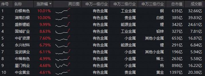 十大股票杠杆排名 ETF盘中资讯|上海大动作!有色金属迎利好!有色ETF华宝(159876)盘中拉升2%,冲击前高!白银有色等3股涨停