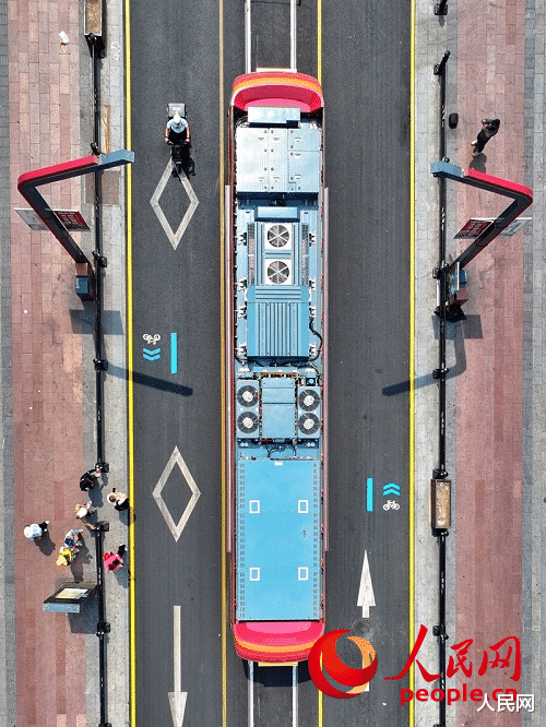 5月29日,由中车长客制造的氢能源文旅有轨列车“氢春号”在长春街头亮相。人民网记者 李洋摄