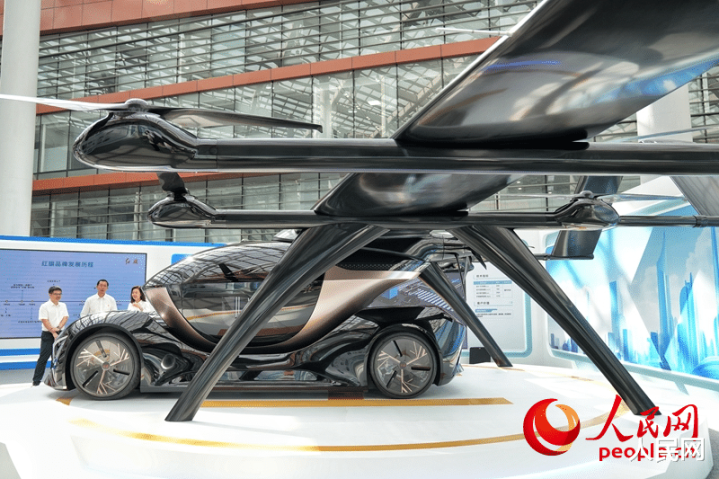 中国一汽创新成果汇报展上展示的红旗天辇飞行汽车。人民网记者 李洋摄